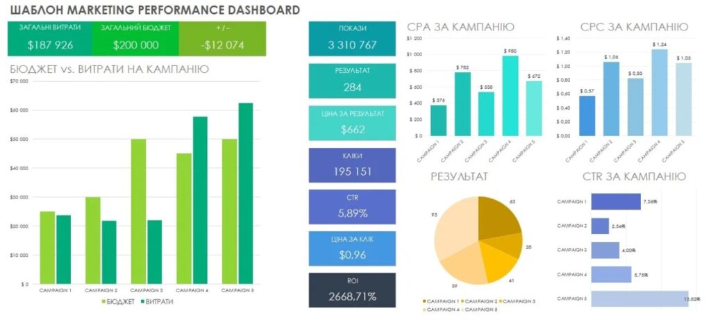И ключевая зона применения дашбордов — контроль эффективности рекламных кампаний.