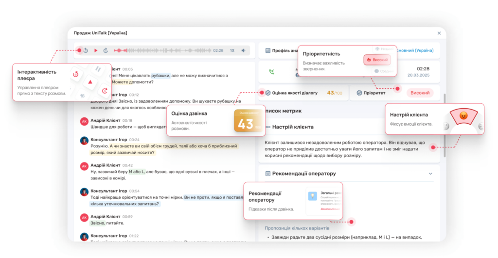 Пример технологии, которая позволяет анализировать речь клиента от компании Unitalk.